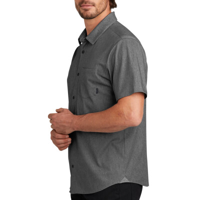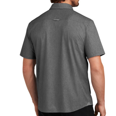 Extend your casual wardrobe with this OGIO knit shirt that has mechanical stretch. The heathered fabric has a subtle pinstripe effect that's evident in the inside collar, locker loop and at the side seam gussets.