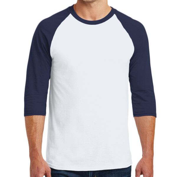 - Contrast color set-in collar and 3/4 raglan sleeve