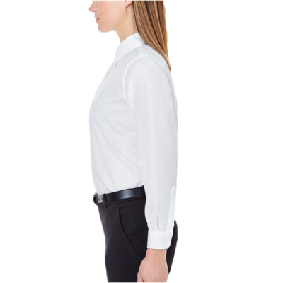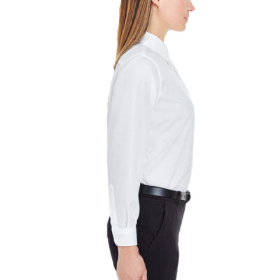 3.3 oz. easy-care 60% cotton/40% polyester; Lightweight; Stain-resistant; Wrinkle-free; 3.3 oz. easy-care 55% cotton/45% polyester; Top-fused center placket; Collar and cuffs; Spread collar; Dyed-to-match buttons; Double-needle side-seam stitching;