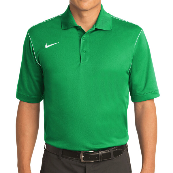 Switch up your solids with this contrast stitch style while staying dry through heated rounds with Dri-FIT moisture management technology. Design details include a flat knit collar, pealized buttons and open hem sleeves. Features a three-button placket and side vents. The contrast Swoosh design trademark is embroidered on the right chest. Made of 5.6-ounce, 100% polyester Dri-FIT fabric.