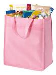 This simple grocery tote features a square bottom to sit upright. Double-stitched seams and reinforced handles add durability.
